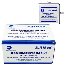 GAZIKI DO DEZYNFEKCJI Z ALKOHOLEM 100SZT. SOFTMED