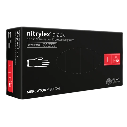 Rękawiczki nitrylowe czarne bez pudrowe Nitrylex Black Mercator medical - Rozmiar - L