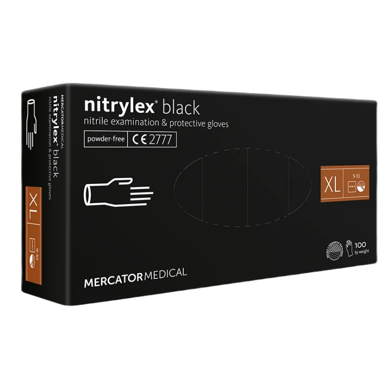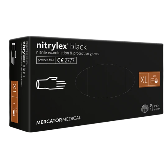 Rękawiczki nitrylowe czarne bez pudrowe Nitrylex Black Mercator medical - Rozmiar - XL