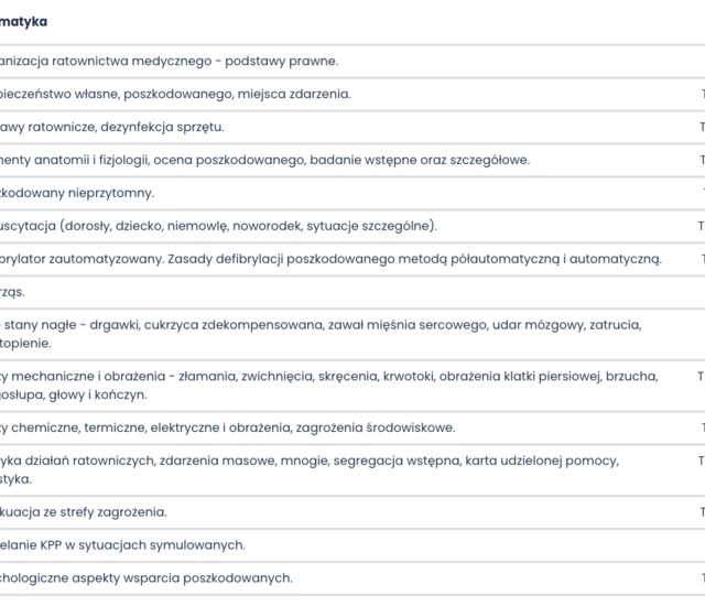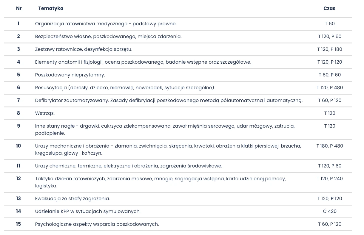 Kurs kończy się państwowym egzaminem, a zdobyte uprawnienia są ważne przez 3 lata. To najlepszy wybór dla osób, które chcą zdobyć konkretne umiejętności, zwiększyć swoje kompetencje zawodowe lub przygotować się do działania w sytuacjach kryzysowych.