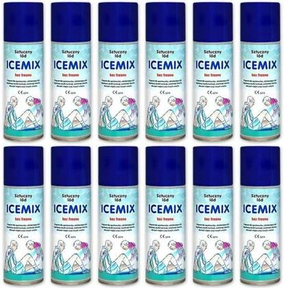 \nLód w sprayu Ice Mix ( sztuczny lód) zwany również zamrażaczem ma właściwości schładzające. Działanie ICEMIX-u polega na uśmierzaniu bólu przez błyskawiczne obniżenie temperatury ciała w miejscu kontuzji. Umożliwia szybkie podjęcie dalszej aktywności sportowej, nie dopuszczając do tworzenia się krwiaków i sińców. Może być stosowany w terapii kriogenicznej pod nadzorem lekarza.