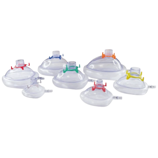 \nMaska posiada pierścień mocujący, kodowany kolorystycznie dla łatwej identyfikacji rozmiaru. Przeźroczysta kopuła umożliwia ciągłą obserwację pacjenta. Dobrze przylegający, miękki mankiet zapewnia komfort podczas użytkowania. Zawór z możliwością regulacji ciśnienia umożliwia dostosowanie maski do indywidualnych potrzeb pacjenta. Produkt jest czysty mikrobiologicznie i zapakowany w folię.