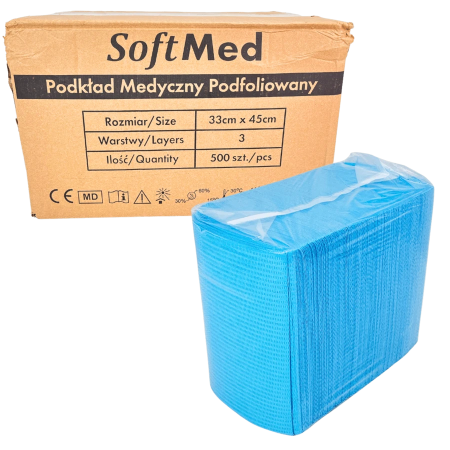 PODKŁAD PODFOLIOWANY MEDYCZNY W SKŁADCE NIEBIESKI 33X45CM 4X125SZT SOFTMED