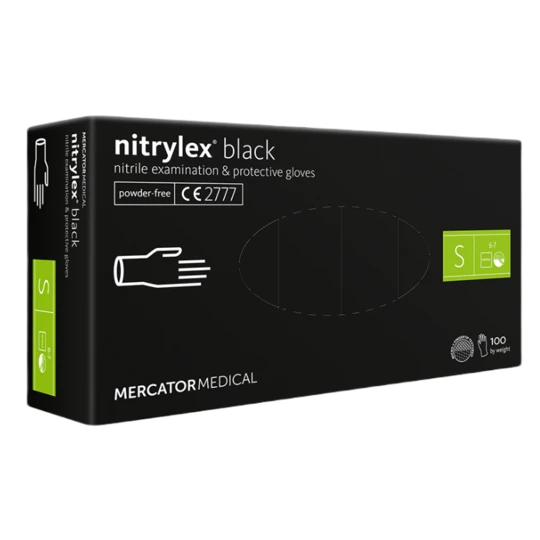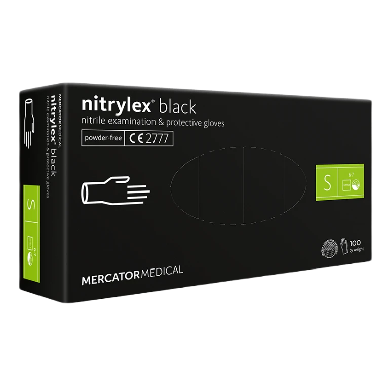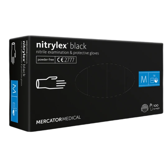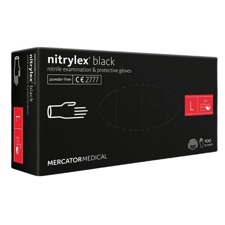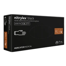 Rękawiczki nitrylowe opakowanie 100 sztuk w kolorze czarnym Nitrylex Black Mercator Medical świetnie sprawdzą się jako ochrona przed wybranymi środkami chemicznymi, wirusami czy bakteriami.