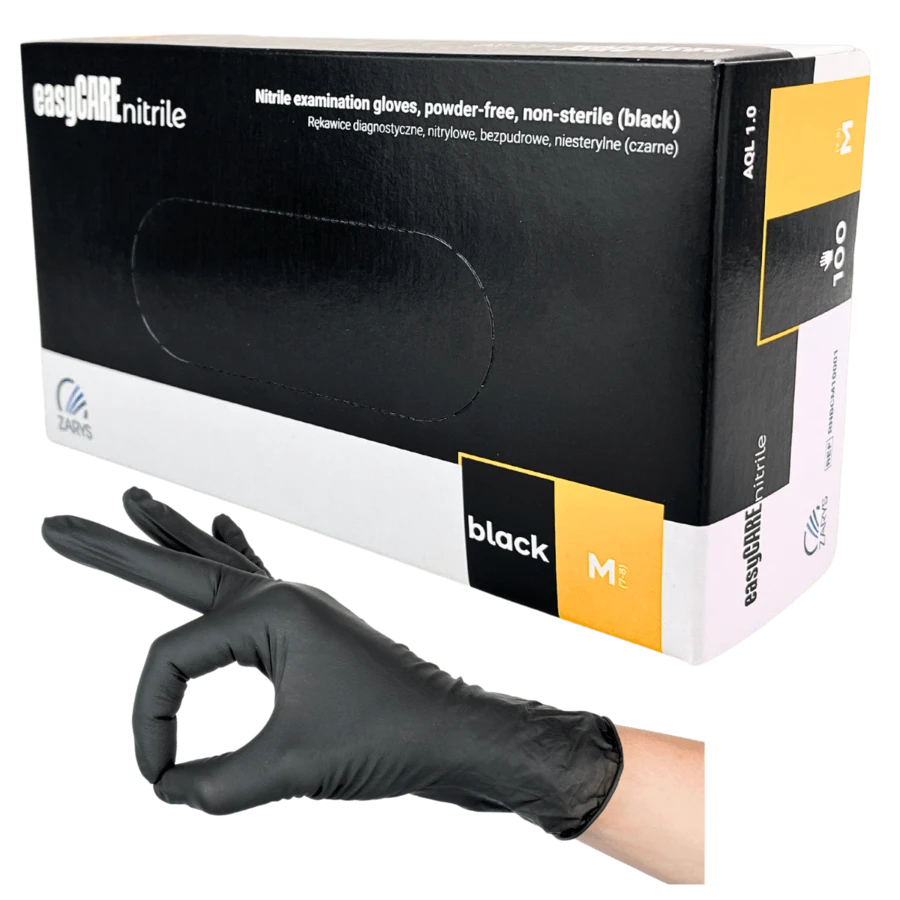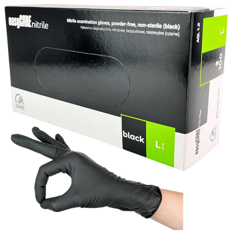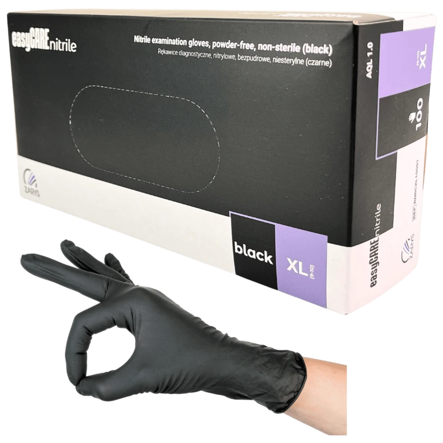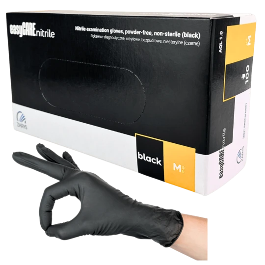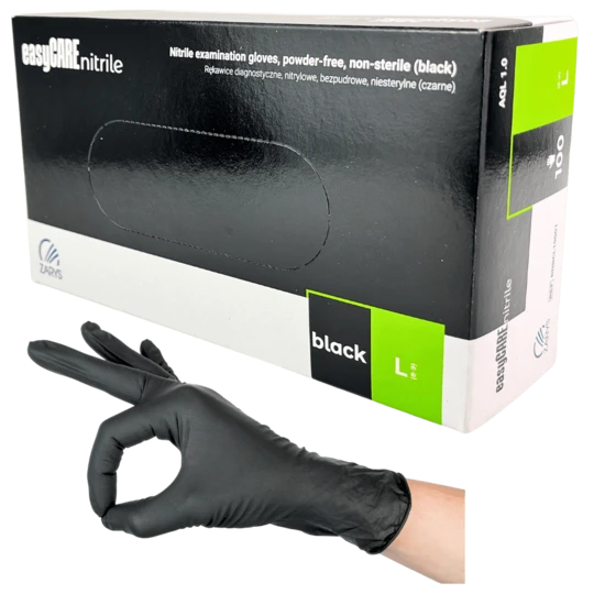 Zabezpiecz swoje dłonie z wysokiej klasy rękawiczkami nitrylowymi easyCARE Black Zarys. Te uniwersalne rękawice diagnostyczne zostały starannie wykonane z najwyższej jakości czarnego nitrylu.