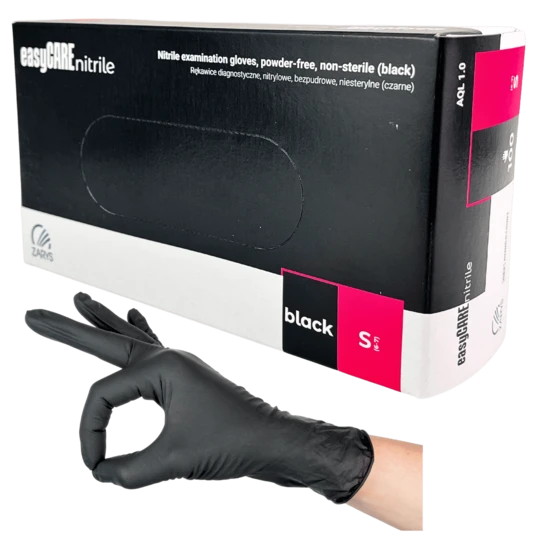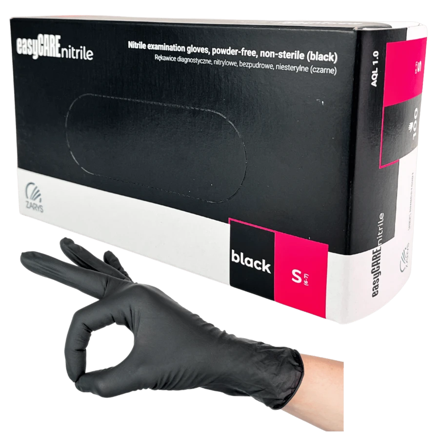 RĘKAWICZKI NITRYLOWE CZARNE BEZPUDROWE 100SZT. EASYCARE BLACK ZARYS - Rozmiar - S