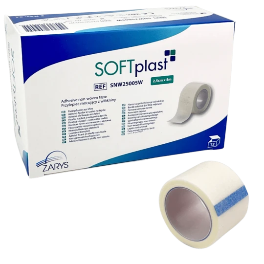 - Dzięki wodoodpornemu klejowi, plaster włókninowy doskonale przylega do skóry, również mokrej, co czyni go idealnym do stosowania w miejscach narażonych na obrzęki i rozdęcia. \n
