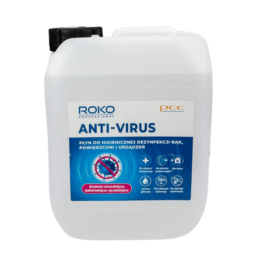 Roko Anti-Virus+ to niezawodny środek dezynfekujący w 5 litrowych butelkach o 70% zawartości alkoholu etylowego, połączona z gliceryną. (Dawniej HYSEPTA)