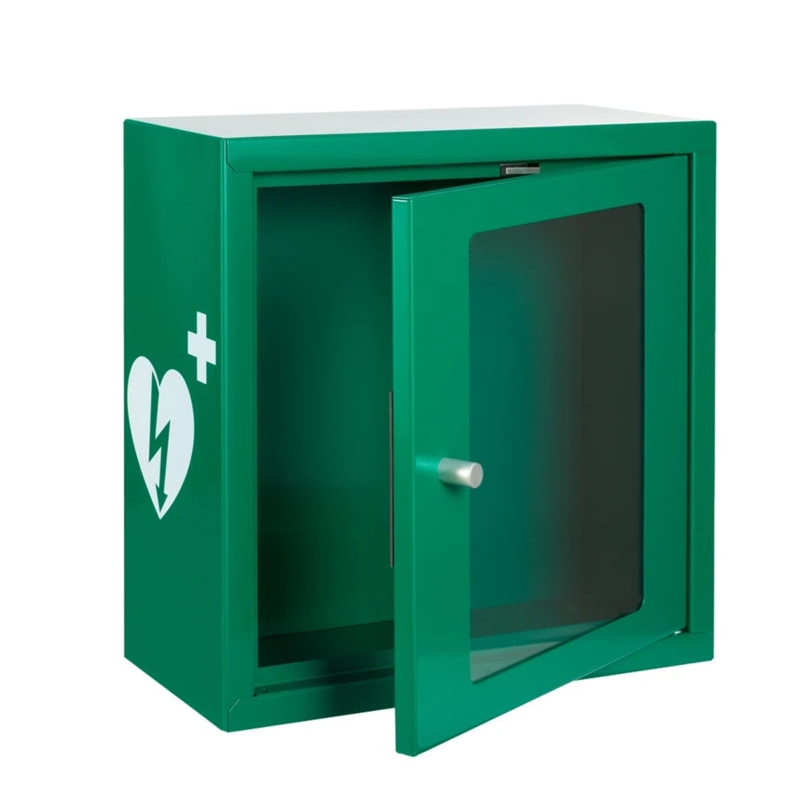 Szafka na defibrylator AED z alarmem dźwiękowym i świetlnym – zielona
