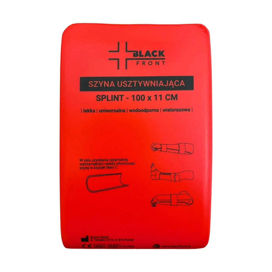 \nSzyna usztywniająca typu SPLINT o wymiarach 100 x 11 cm. Szyna pakowana na płasko. Podstawowe element każdego zestawu ratowniczego.
