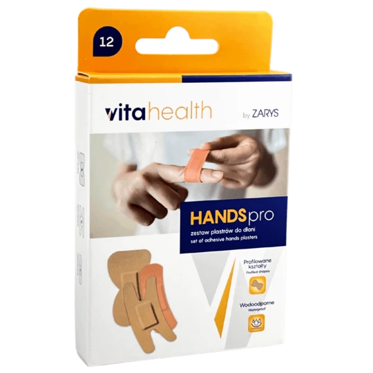 Zestaw plastrów do opatrywania dłoni o funkcjonalnych, profilowanych kształtach. Ułatwia udzielenie pierwszej pomocy w przypadku powierzchownych skaleczeń i ran na palcach.
