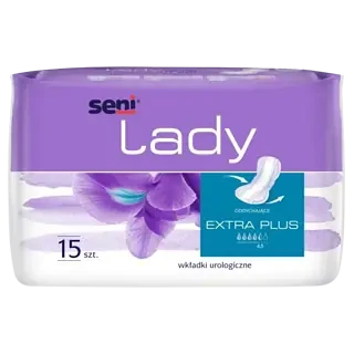 Wkładki urologiczne Seni Lady Extra Plus to dyskretne wkładki urologiczne przeznaczone dla kobiet z lekkim/średnim nietrzymaniem moczu