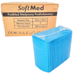 PODKŁAD PODFOLIOWANY MEDYCZNY W SKŁADCE NIEBIESKI 33X45CM 4X125SZT SOFTMED